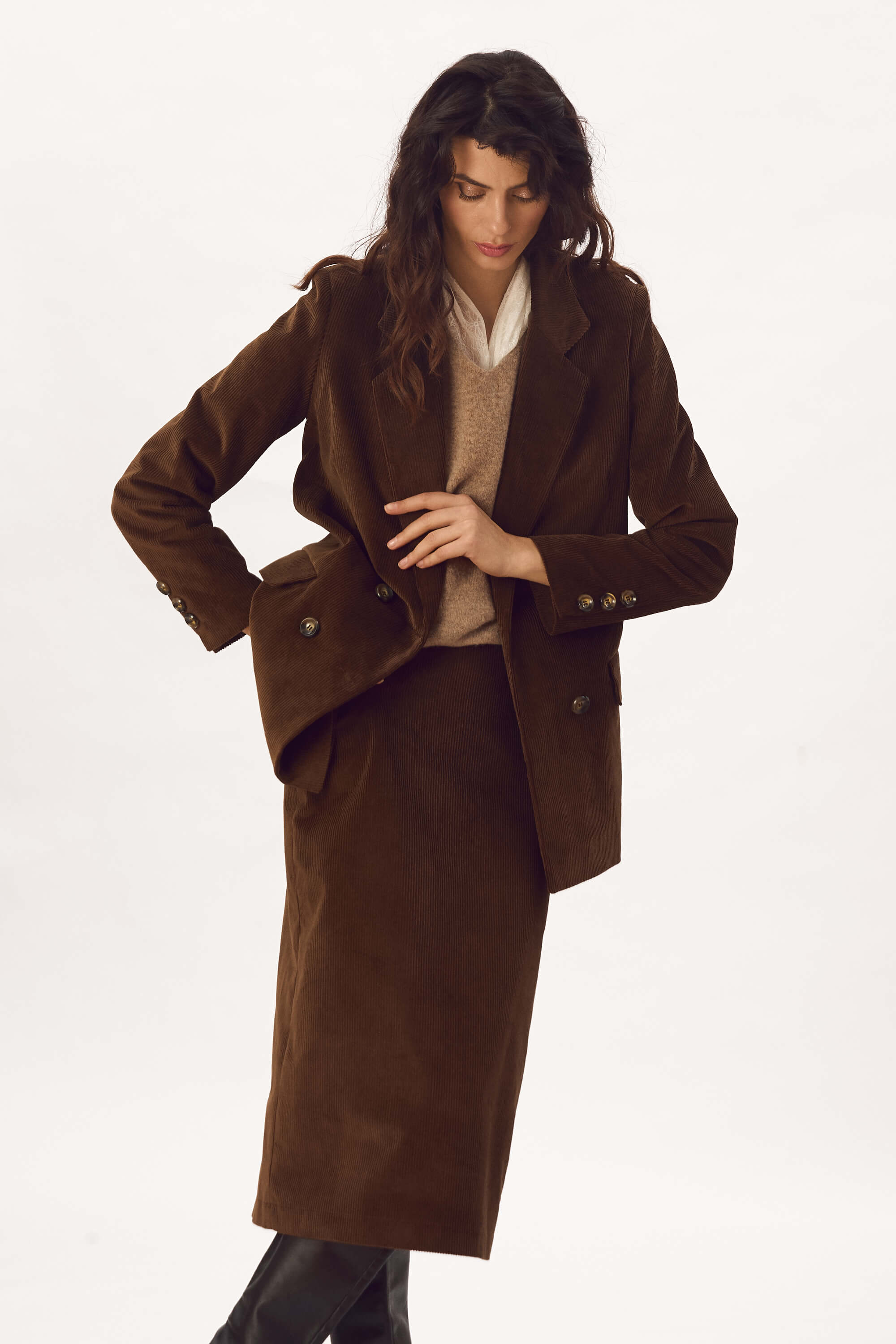 Set Sacou Si Fusta Din Catifea Reiata De Bumbac “Luara”